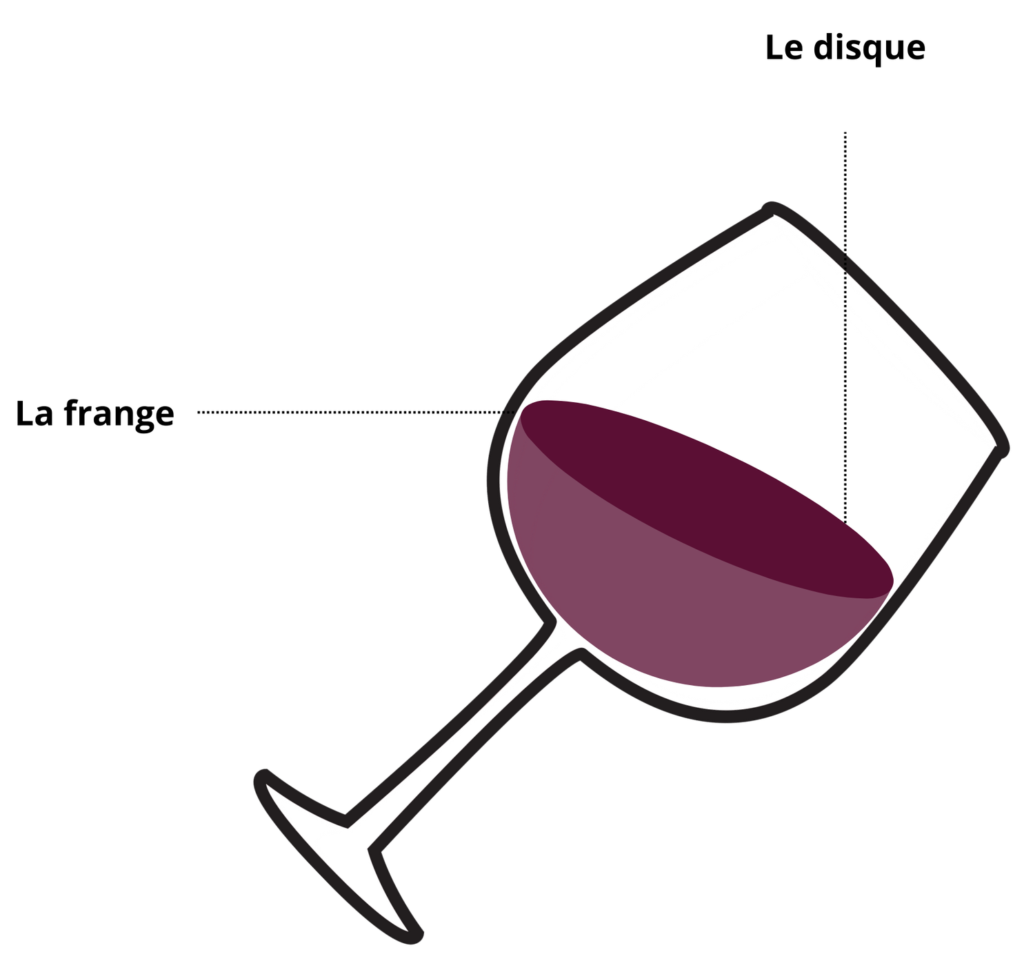 La frange est le point de contact entre le vin et le verre. Avec un verre penché à 45°, c'est là où l'on retrouve
