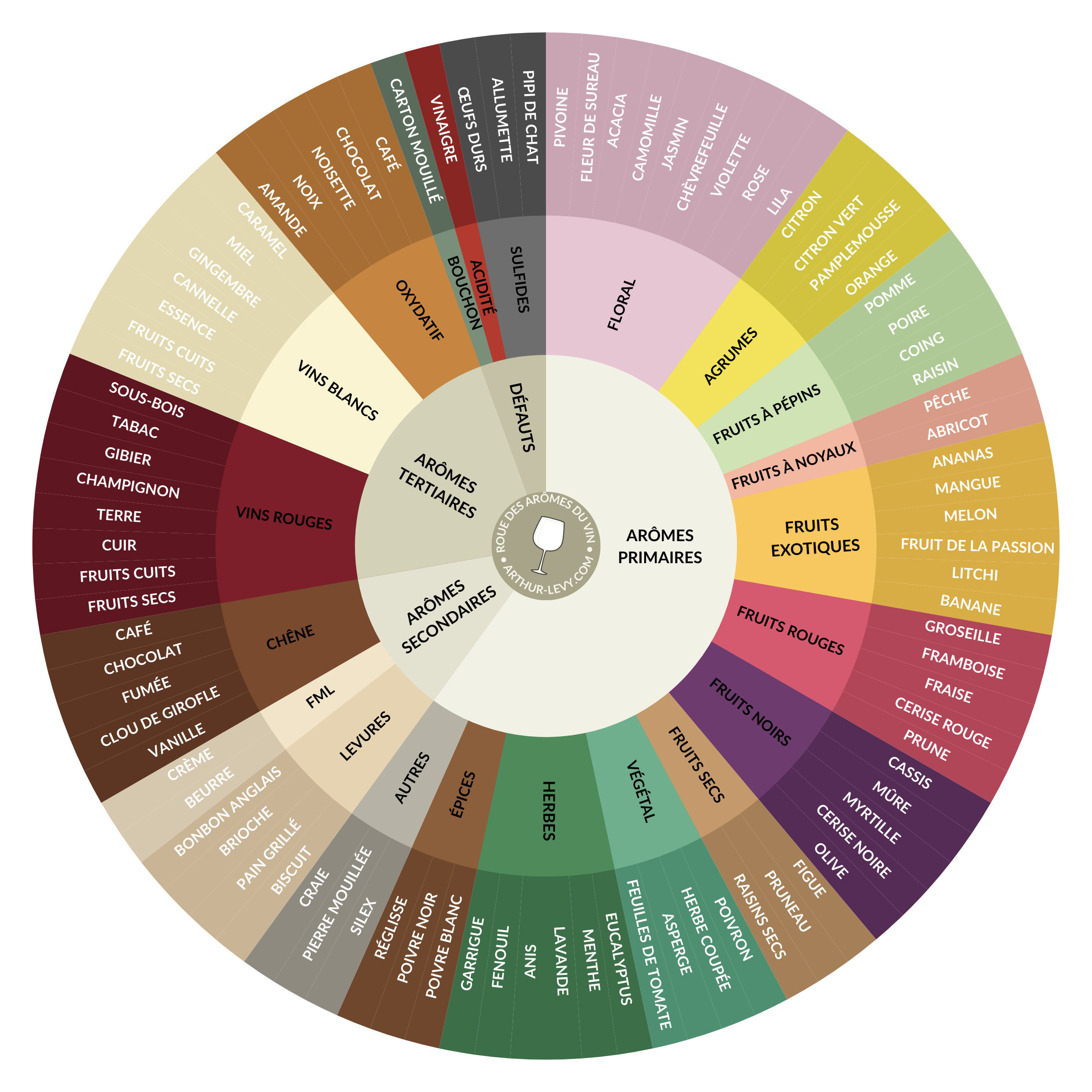 Pour mieux les identifier, il est utile de s'aider d'une roue des arômes.